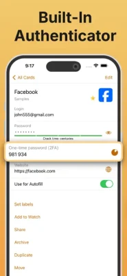 SafeInCloud is not just a password keeper, but also a 2FA authenticator that generates one-time codes for any website. This means you won't need a separate 2FA authenticator app.