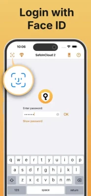 You can instantly unlock SafeInCloud with a fingerprint on devices with Touch ID. You can also unlock SafeInCloud by face recognition using Face ID technology.