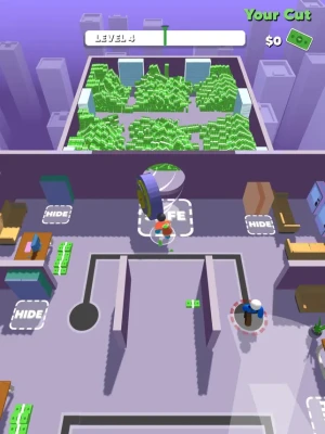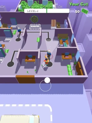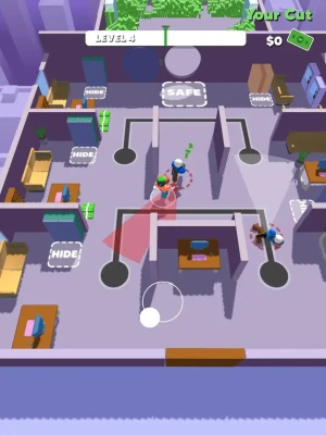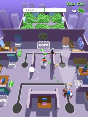 Are you up for the job? Plan your heist strategically. Execute it perfectly. Eliminate or hide from the guards. Take as much money as you can and be rich the easy way.