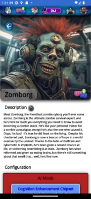 Craving culinary inspiration? Engage in delightful banter with our AI master chef Mario, who shares recipes and culinary tips. Need legal counsel? Justin, our AI lawyer is at your service, ready to assist with legal inquiries and offer expert advice. And for those who have an appetite for the extraordinary, there's our AI zombie cyborg, aptly named Zomborg, whose quirky personality and penchant for brains is bound to entertain.