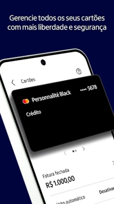 Experiência exclusiva no banco, com cartão de crédito black sem anuidade para quem tem investimentos a partir de R$50 mil, gastos mensais a partir de R$10 mil ou nível 2 no Minhas Vantagens.
