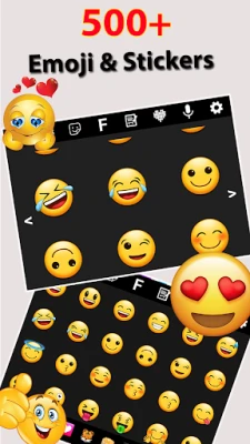 This photo keyboard provide you customize text sticker and different kind emojis.