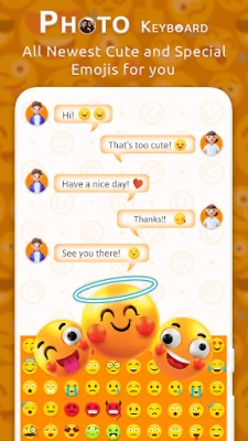 Photo Keyboard Themes app new helps you to customize background keyboard and set my photo on keyboard background with best fancy font Keyboard characters. This cute emoji keyboard for girls gives you beautiful smiley faces and “emoticons for texting” which will rich your messages and make them even more fun.