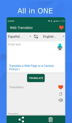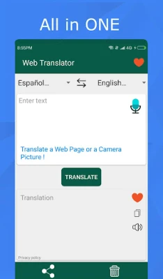 This app allows you to translate text, photos, camera, web pages as well as voice from any language to your wanted language. It is flexible and simple to use. It supports voice translation, text and camera pictures translations.