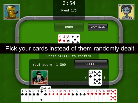 Pick’Em Puzzle® is a companion app to Pick’Em Blitz®, which gives you in each hand only one shot to win without having the opportunity to try alternate card selection strategies. Puzzle and Blitz are in a sense opposite sides of the same coin!
