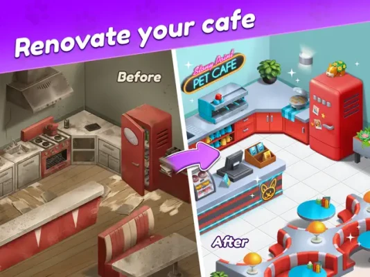 Choose furniture & renovate the pet cafe’s as you win more solitaire card games.