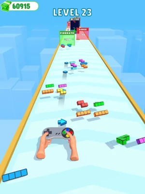 You have a broken controller!! You can complete the controller by collecting the blocks. The controller shoots arrow keys by clicking the buttons rapidly. Choose the gates wisely to upgrade your firepower, and aim for the puzzle screens to complete your block puzzle.