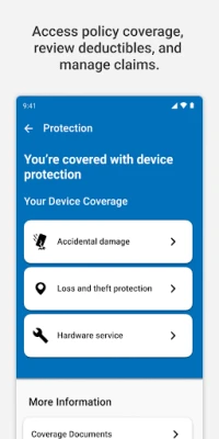 ● Coverage Dashboard — View program features and benefits, check your service fees and deductibles, review your coverage documents and full program details, and file and track a claim.
