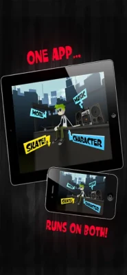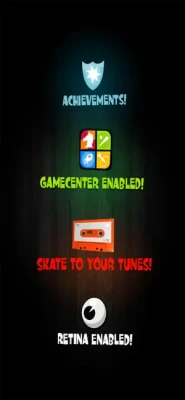 • Personalise your character • Unlock cool boards and moves • Achieve, achievements • Skate to playlists from your own library • GameCenter Enabled • Global Leaderboard • Retina Enabled • Fast App Switching Enabled • Works on iPad too • Create your own custom board designs! • Unlock SkateWolf by skating at midnight • Unlock Halloween Characters by shaking your device in the Character Menu.