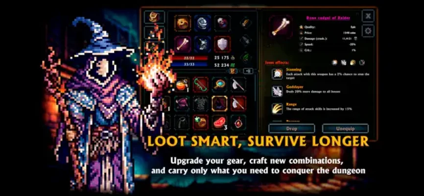 Dynamic 2D Roguelike with Action-RPG elements.Raid endless dungeons, rebuild your fortress, and develop your own heroes!