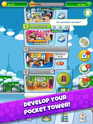 Pocket Tower will whisk you away from the drudgery of everyday life and immerse you in a thrilling world of business and economics, with stunning graphics, realistic interiors, and with a city and characters waiting just for you.