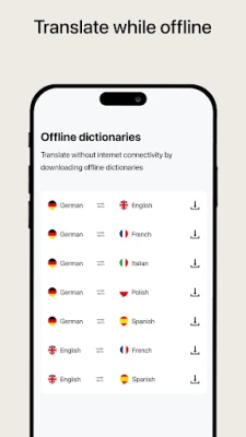 The app includes PONS Dictionaries for Arabic, Bulgarian, Chinese, Croatian, Dutch, English, Finnish, French, German, Greek, Icelandic, Italian, Japanese, Latin, Persian, Polish, Portuguese, Romanian, Russian, Serbian, Slovakian, Slovenian, Spanish and Turkish. In addition to dictionaries with German you will find dictionaries for combinations such as Spanish-English, French-Polish, or Portuguese-Spanish. You have access to over 50 dictionaries. The text translation system integrated into the app covers all of the languages of the online dictionaries plus an additional 12 languages such as Hebrew or Korean.