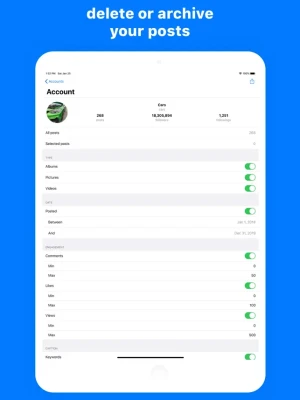 This app offers an easy and intuitive experience. Just sign-in your Instagram accounts and start archiving or deleting your posts.
