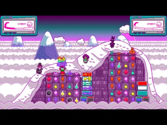 It may look like Princess Farmer plays like modern match-3 games but it’s much more strategic and reaction-based, tasking you with character movement and stack management. You can choose to adjust how you approach your strategy to maximize matches, combos, and smashes. Personalize your playstyle: are you an Action Bunny, a Puzzle Bunny, or a Balance between the two? Level goals range from simple (like score, timed, harvest a certain veggie) to challenging (like fulfilling requests, avoiding matching certain veggies, danger areas). Some levels will pit you up against a (pretty adorable) opponent. But watch out for storms! That's when Grumpy Block shows up to spoil all your harvesting fun!