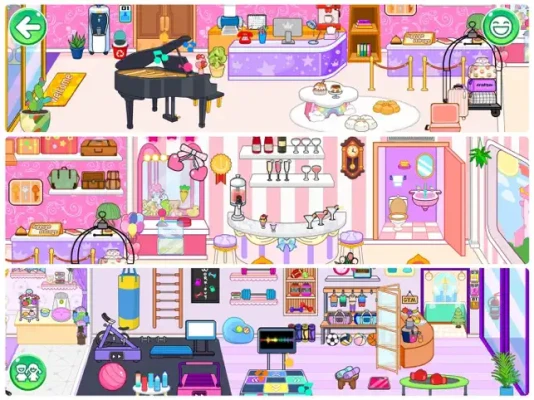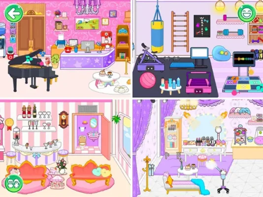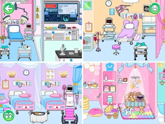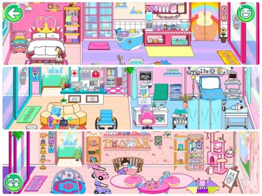 - Choose a room in the dream house and a character to play with, such as the Toka Boka town, hospital room, and luxury canteen.