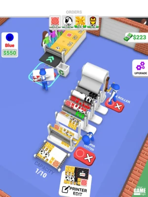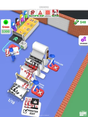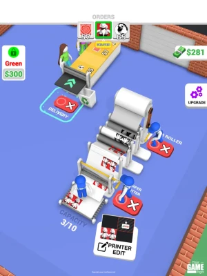Simple and addictive gameplay Upgrade your machines to increase productivity Manage your workers and assign them to the right tasks Complete orders and deliver printings to earn money and grow your business Beautiful 3D graphics and animations