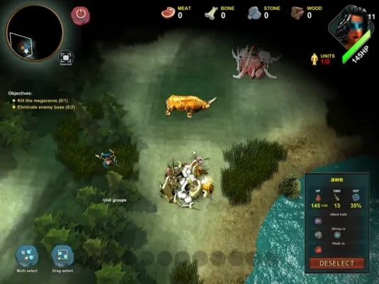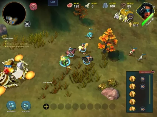 The game also provides full control over camera rotation, zoom and pan and includes multiple unit selection using both tap or drag gestures. Use the group selection feature to create groups of warrior units, ensuring you deliver your best strategy at all times.