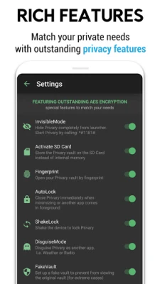 Unlike other apps that simply hide files, Privary Photo Vault utilizes robust AES CTR encryption to protect your data from hackers and prying eyes. Our advanced security measures guarantee the privacy of your most sensitive content.