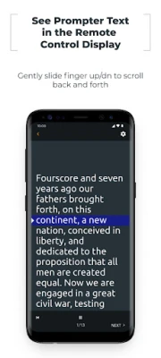 PromptSmart+ Remote is a companion app to the PromptSmart+ teleprompter app (subscription required) that lets you control the scrolling of your content with a simple tap of your finger to move it forward or backward, start/stop your presentations, and return to the beginning.