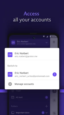 • Switch between multiple Proton Mail accounts