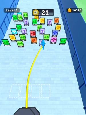 Control your stickman to pick up a hook and attach it to powerful cards within a limited time. Strategically deploy these collected cards on the battlefield to open gates and upgrade your soldiers in the line. Prepare for an adrenaline-fueled adventure where quick reflexes and cunning strategy are the keys to victory!