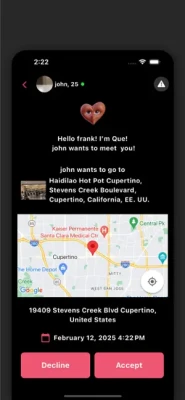 QueWho! is the ultimate social app for inviting people to join you at your favorite spots! Whether it’s a trendy restaurant, a cozy café, or a scenic park, QueWho! lets you set up invites, explore new venues, and connect with friends or new acquaintances for exciting outings. Just pick a place, send an invite, and get ready to enjoy good company in great locations, you can set a trusted contact to automatically receive an SMS if you haven’t checked out within 5 hours of your Q-Socials. Discover new places, make meaningful connections, and bring your social plans to life with QueWho