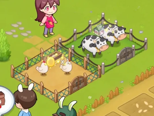 As your farm advances, you can start producing eggs and milk from chickens and cows. By investing gold to level up your livestock, you will be able to produce high-quality golden eggs and nutritious milk.