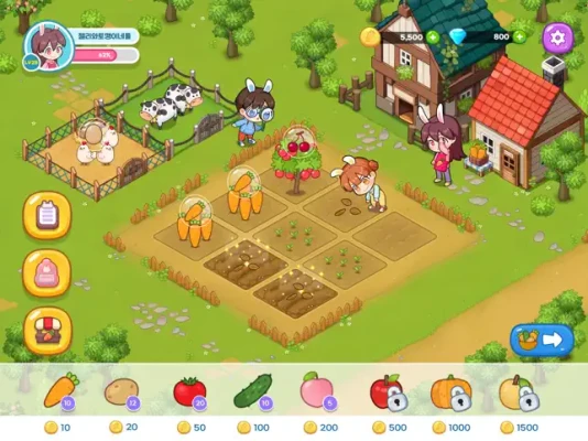 Harvest ripe and nutritious vegetables, such as carrots, cucumbers, potatoes, and pumpkins, from your farm. You can efficiently plant a range of vegetables by selecting them from the menu and dragging them to the desired location. Harvest multiple vegetables of the same type with a single touch for greater efficiency.