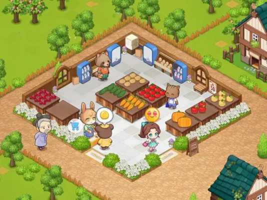 As your harvests increase, you can open a market and start selling your goods. Adorable animal visitors will also come to your market, so make sure to harvest and display your goods adequately to satisfy everyone's needs.