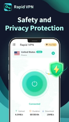 Rapid VPN is a fast, free, easy-to-use VPN service in your pocket! Enjoy a safe, secure, and anonymous internet connection from anywhere in the world. Protect your private data and broaden your access to regionally available content from around the globe.