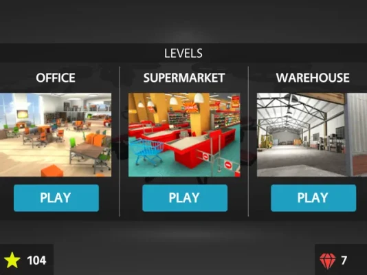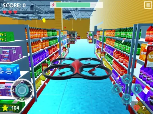 Fly remote controlled drones and collect stars at three different places: Office, Supermarket and Warehouse.