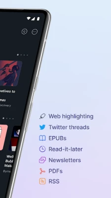 You can even import your existing library from Pocket and Instapaper and RSS feeds from Feedly, Inoreader, Feedbin, etc.