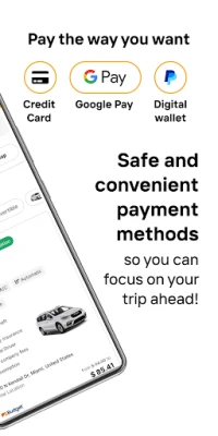 Enter your destination, pick-up and drop-off dates and times, country of residence, and click Search. The app quickly shows you the cheapest options at your destination. Filter by category, rental company, insurance type, and payment method, and reserve the perfect car in just a few minutes.