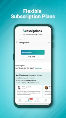 Safe & Sanitized Car Rentals & Car Subscription Services delivered to your doorstep 24/7 with prices starting at just ₹ 33* per hour.