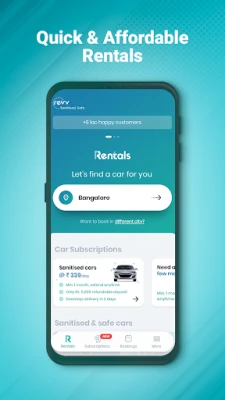 Sanitized car rentals FAQs at https://www.revv.co.in/faq