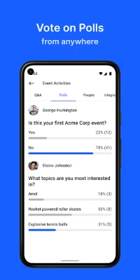 Whether you’re joining your event virtually, in-person, or both, you can use the RingCentral Events mobile app to:
