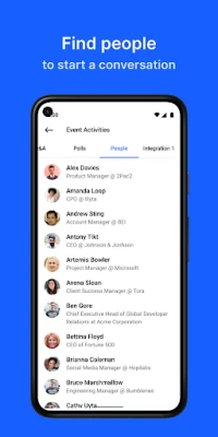 Easily find your way around the in-person event venue by accessing floor maps. Never get lost at an event again.