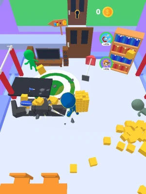 Enter rooms and break everything to gain gold. Then power up your stuff and crew
