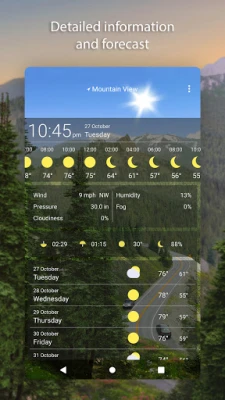 The movement of the sun, precipitation and the phase of the moon are realistic on-screen animations with beautifully crafted details. The picturesque landscape reflects the weather with amazing accuracy. Enjoy the sunrise, rainbow, birdsong and every sun glare!