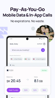 • Data + Voice in one app: Mobile internet and international in-app calling with a single wallet