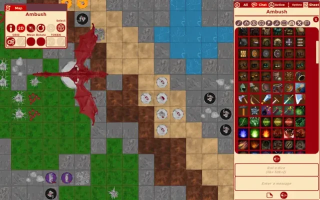 - Interact with the other players via chat: posting messages, rolling dice, sending stickers, and sharing links