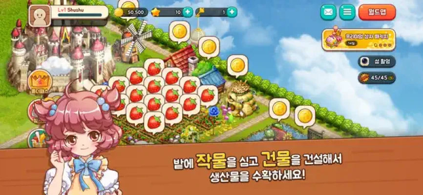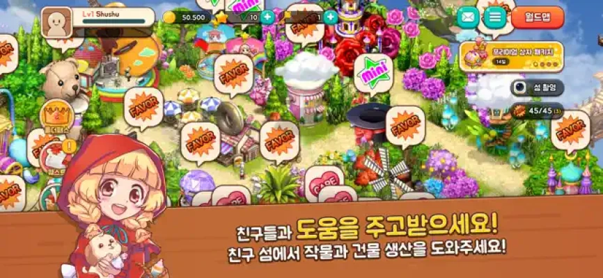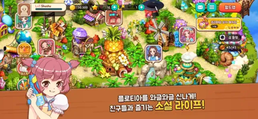 - You can manage your island by constructing and decorating buildings and harvesting crops, and actively interact with your friends as well.