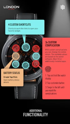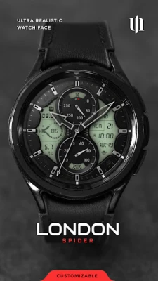 The S4U London Spider is a extremely realistic hybrid watch face. High quality and multiple color customization options are the main focus here. The extraordinary 3D effect gives you the feeling of wearing a real watch. Take a look at the gallery to get a good impression.