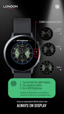 ** Static elements are drastically dimmed to prevent burn in effect on your watch display. Keep in mind, when you using the always on display it will reduce your battery endurance! **