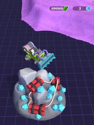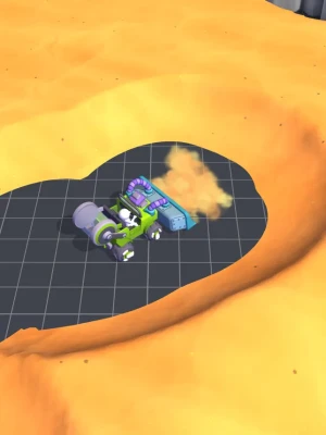 Vacuum the sand with your truck, extract resources, sell them at the base and improve your track to get even more!