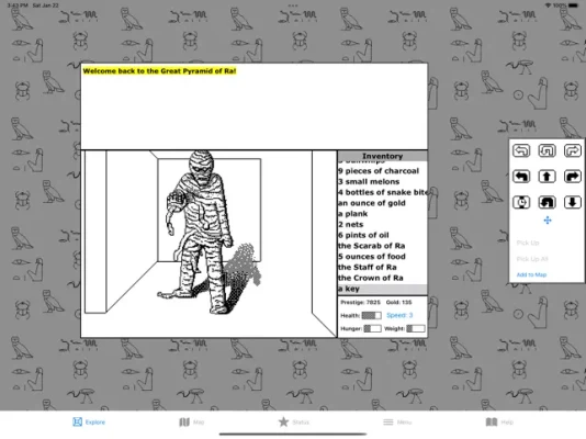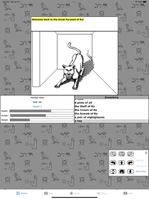 Explore the mazes of the Great Pyramid of Ra! Each level is a new, larger, random maze to solve. Find tools and supplies abandoned by earlier, failed expeditions, try to avoid the traps, and encounter dangerous animals and the fearsome Guardians as you seek the three sacred Talismans of Ra the Sun-God. This faithful, retro-styled recreation of the original shareware classic from 1987 also offers optional new game features including new tools and hazards, and controls that allow you to tone down Animal Ferocity and the dangers of traps to suit your preference.