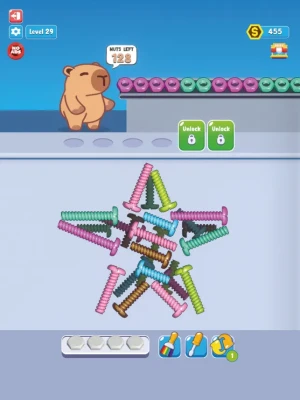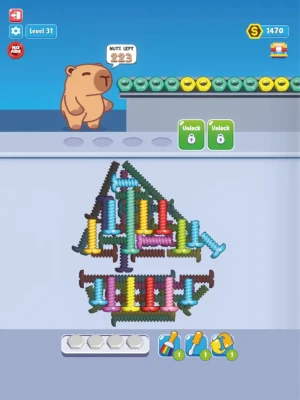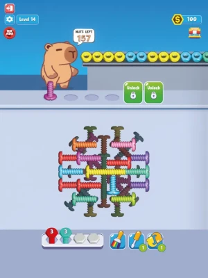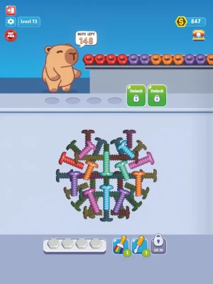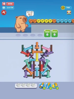 Immerse yourself in a beautifully crafted world of nuts and bolts. Vibrant colors, detailed animations, and seamless gameplay create a visually captivating experience. Watching the bolts align and lock into place is endlessly satisfying!