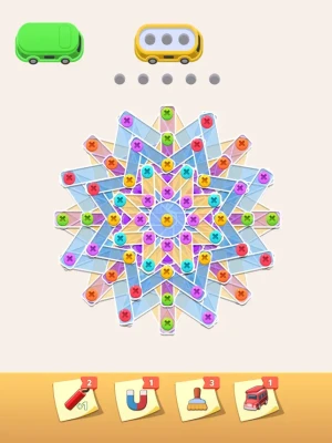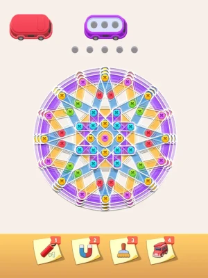 - Fill each screw box with the same color screws, you need to fill all of them to win.