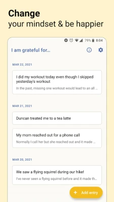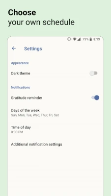 • Reminder notifications so you remember to practice gratitude and form a habit for mental wellbeing