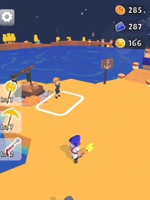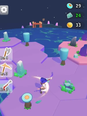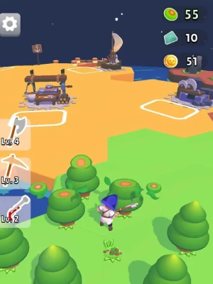 Get your axe and start to move up into the island, gather tree logs along the way and upgrade your tools. Craft your boat and sail to other islands. You need to craft new ships to sail other islands.
